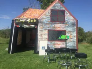 Here’s something for the Southsiders-an Irish Pub. Because why not have a blow up pub on a golf course?? Water front views, a Guinness and a fake fireplace made for a perfect afternoon hot spot. Sláinte!